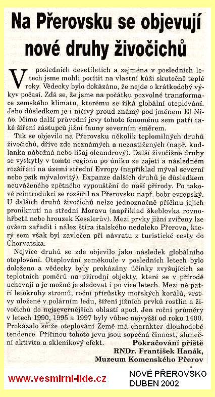 151 tn_151.jpg (1917 bytes)Na Přerovsku se objevují nové druhy živočichů (4.2002)