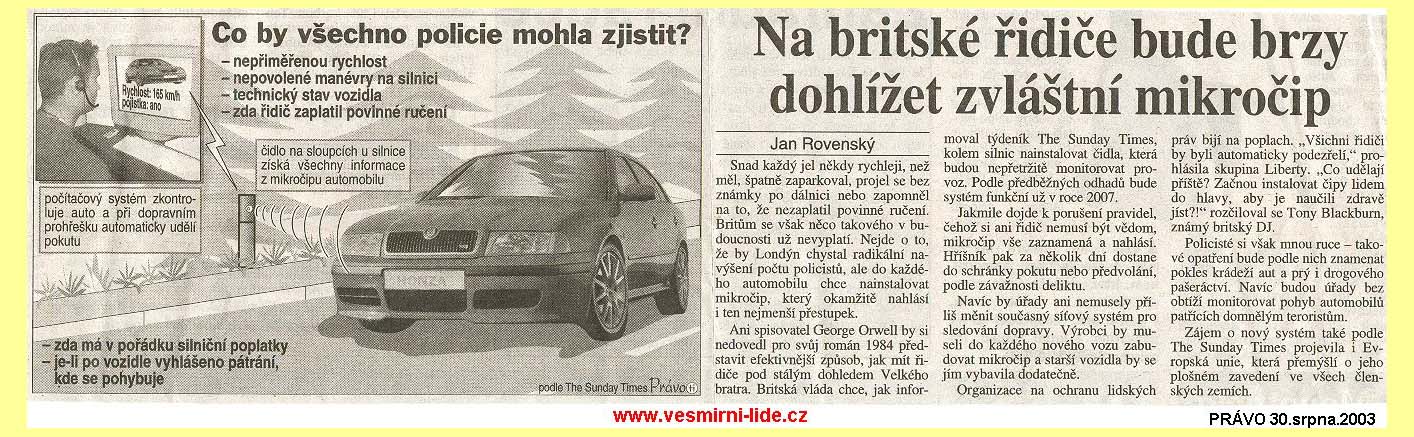 152 tn_152.jpg (2138 bytes)Na britské řidiče bude brzy dohlížet zvláštní mikročip (30.8.2003)