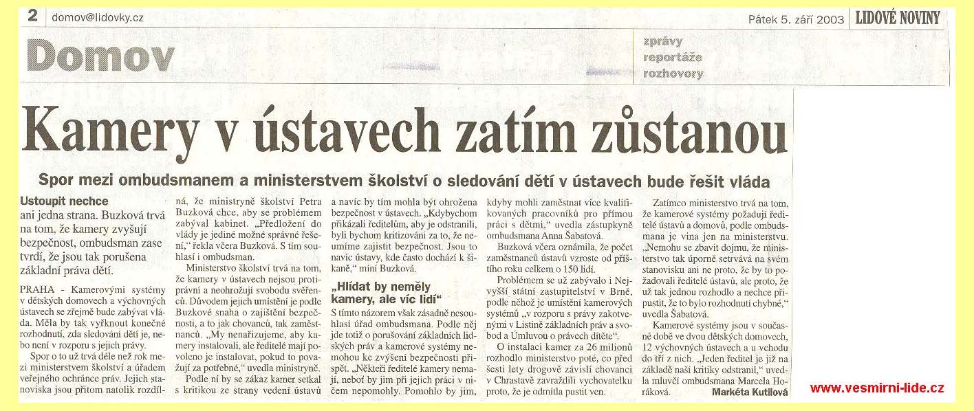 153 tn_153.jpg (2231 bytes)Kamery v ústavech zatím zůstanou (5.9.2003)
