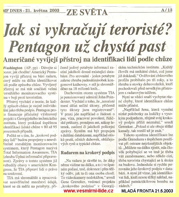 155 tn_155.jpg (2386 bytes)Jak si vykračují teroristé? Pentagon už chystá past (21.5.2003)
