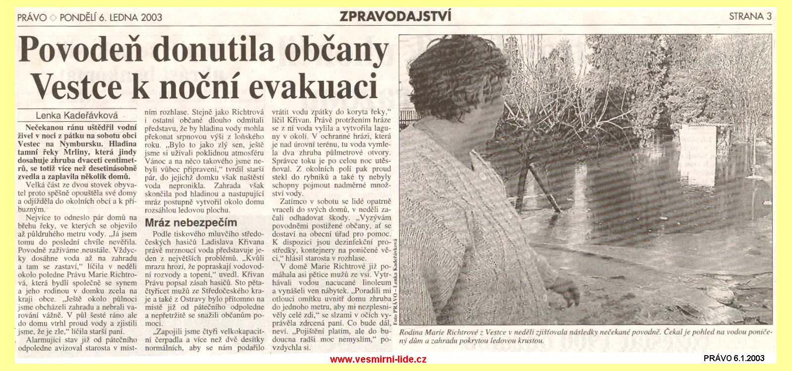 157 tn_157.jpg (2584 bytes)Povodeň donutila občany Vestce k noční evakuaci (6.1.2003)