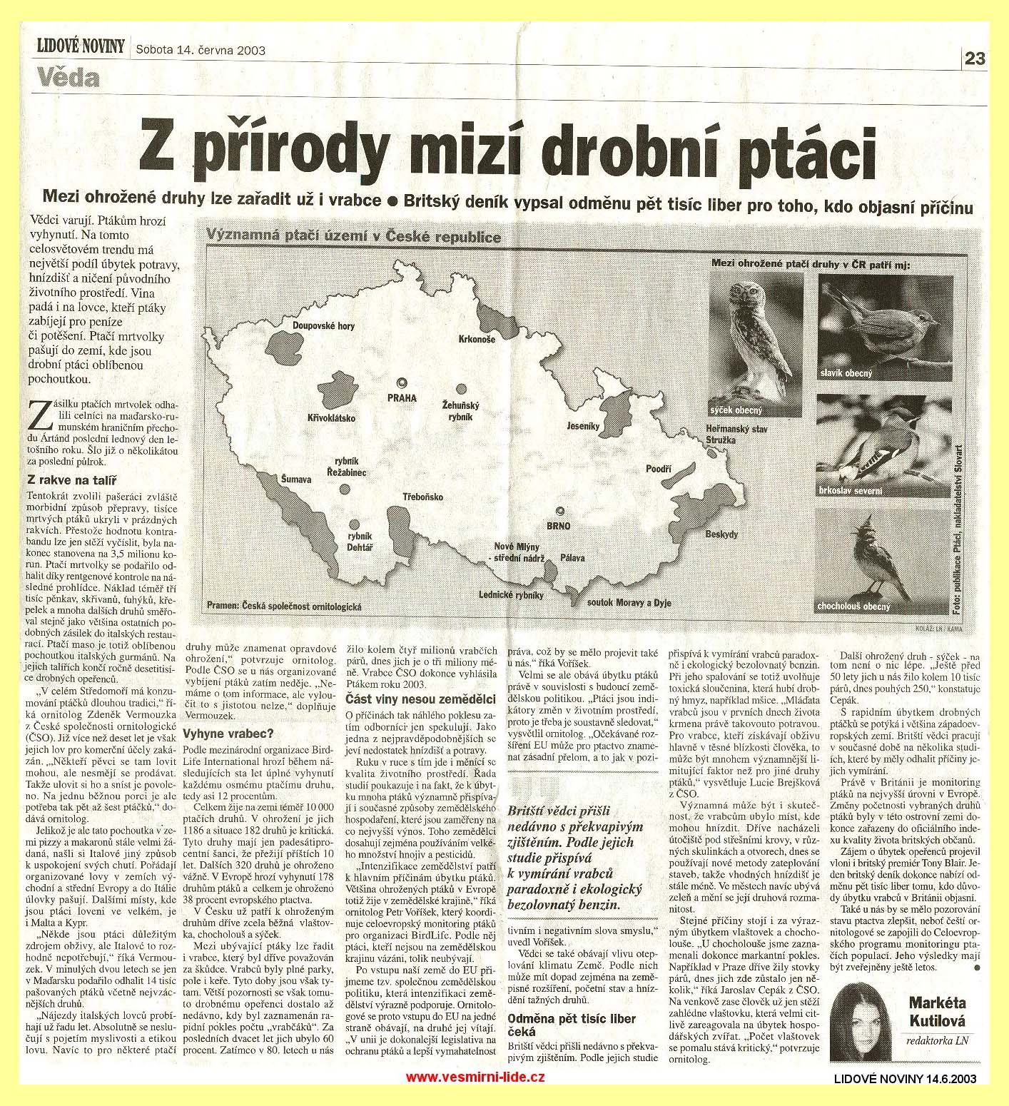 158 tn_158.jpg (2369 bytes)Z přírody mizí drobní ptáci (14.6.2003)